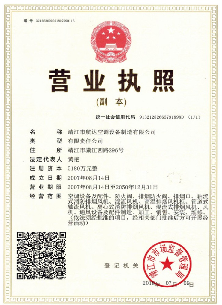 公司消防防排煙風(fēng)機(jī)、風(fēng)閥系列產(chǎn)品獲得消防產(chǎn)品證書(shū)、ISO9001國(guó)家質(zhì)量管理體系認(rèn)證證書(shū)。